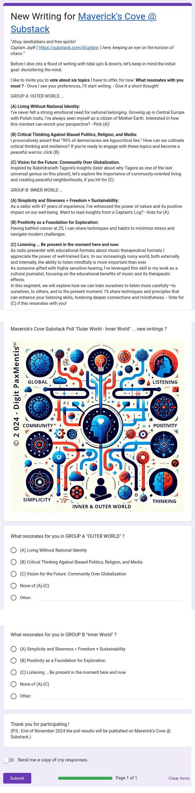 We have decided to offer you beloved Substackers a more handsome Poll form, as published yesterday (11/11/2024) with the 1st Captain’s Log by our founder, journalist, media producer and fashion brand owner Cpt. JayR.
